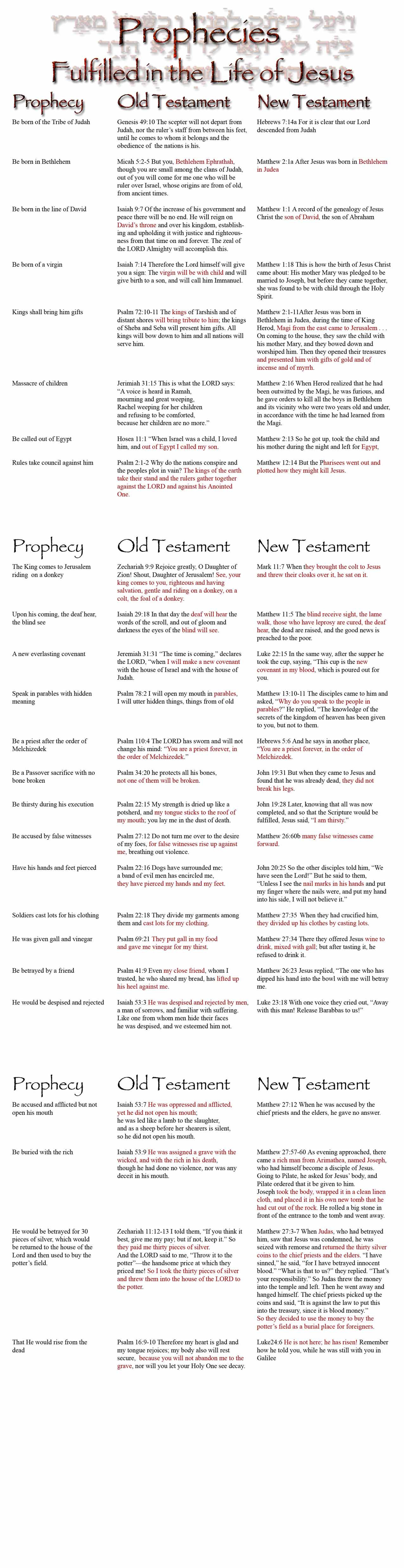 b. I have included a list with some of the prophecies in a handout for today.